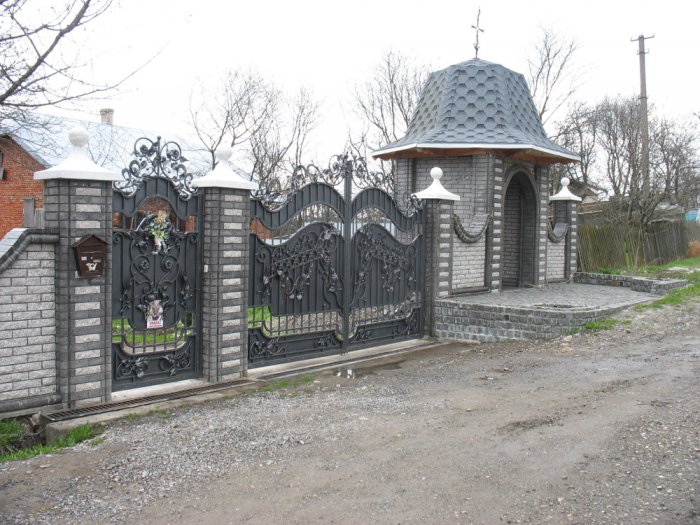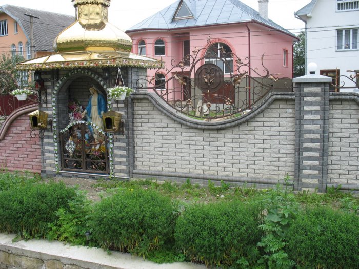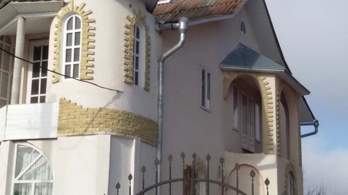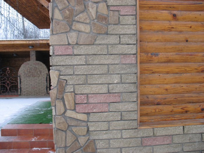Розбіжності у розмірах прямокутних форм і різноманітність поверхонь створюють архітектонічну цілісність з середовищем, яке потребує стилізації під старовину.