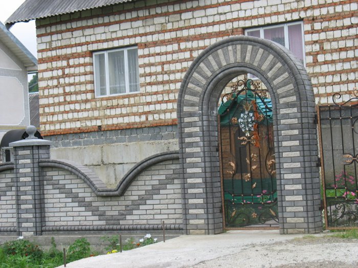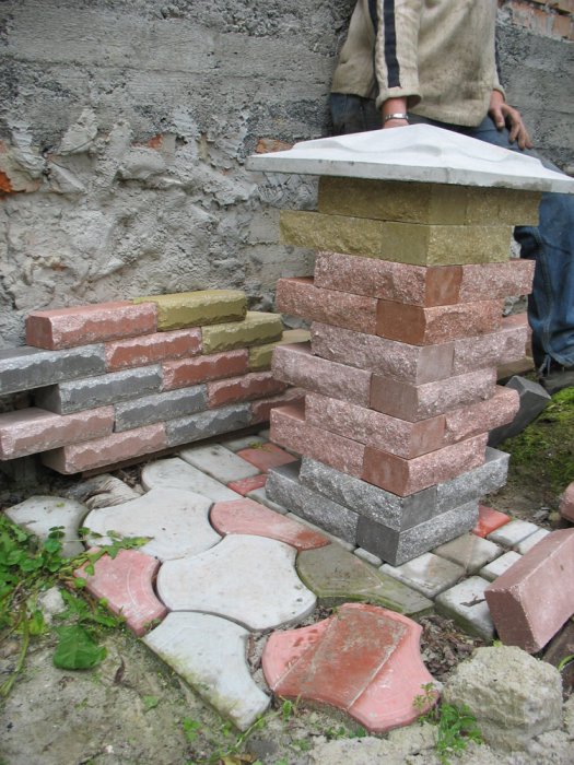 Фігурні елементи мощення виготовляються одношарові сірого кольору і двошарові кольорові. Двошарова бруківка складається з нижнього несучого бетонного шару і верхнього (декоративного) морозостійкого шару.